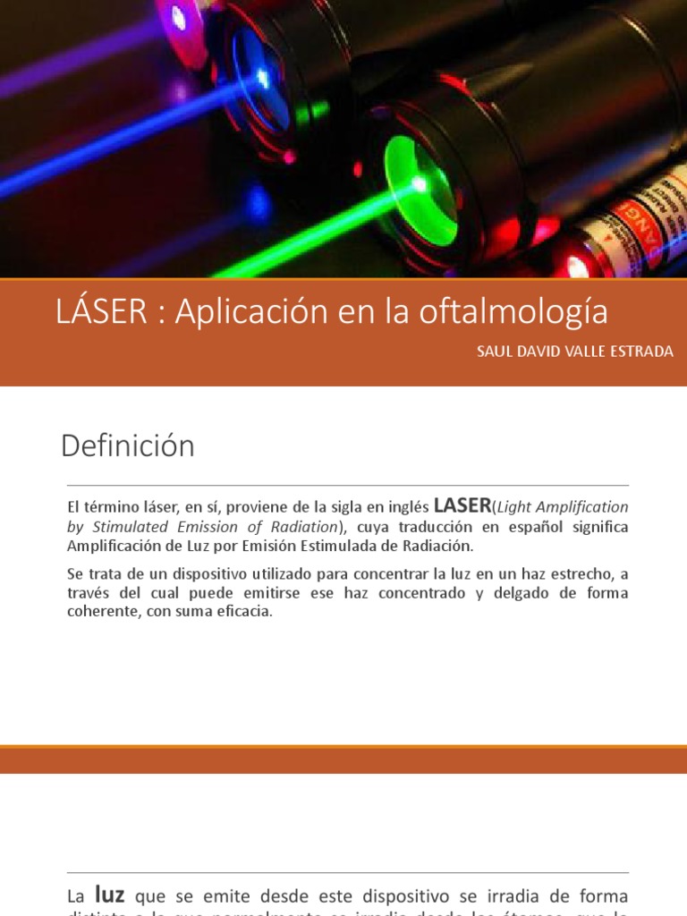 Existen diferentes tipos de láser como el láser fotocoagulador el láser excimer y el láser ionizante neodimio yag.