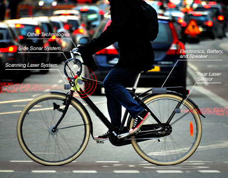 The sensor has a small diameter visible laser which is reflected off the track surface to a precision ccd detector which determines the height from the ground.