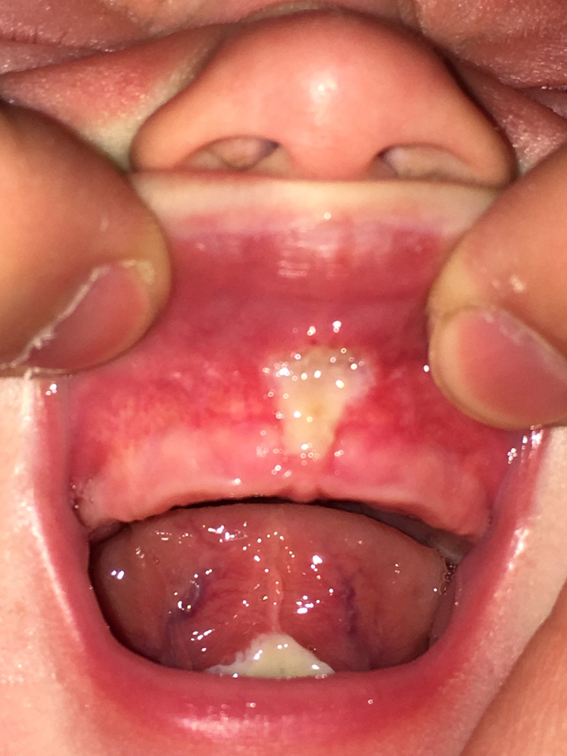 For the upper lip stretch place your index finger under your child s lip and move the finger upward until.